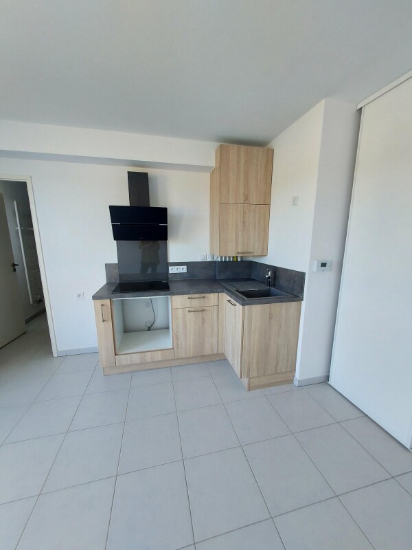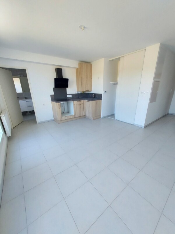 Il est composé d'une entrée, d'un séjour avec cuisine équipée (évier, plaque vitrocéramique, hotte, meubles de cuisine), d'une salle d'eau aménagée avec WC. Il bénéficie d'une place de parking en extérieur.