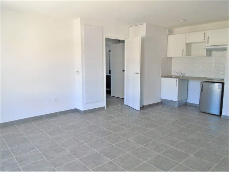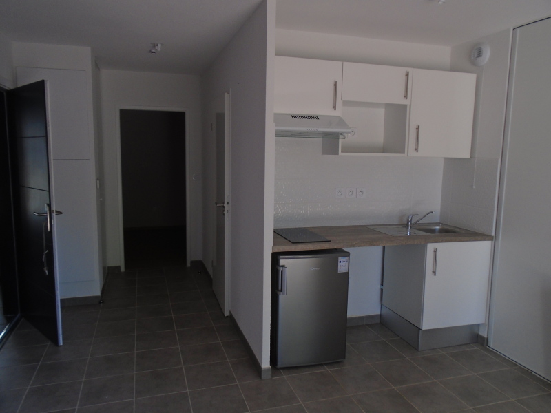 Quartier Vasconia, à deux pas du centre, T2 composé d'une entrée, séjour avec cuisine équipée (évier inox, plaque 2 feux, hotte, meubles hauts et bas, frigo top), une chambre avec placard, salle d'eau aménagée avec WC, un balcon de 6.25 m² , deux places de parking en sous sol.