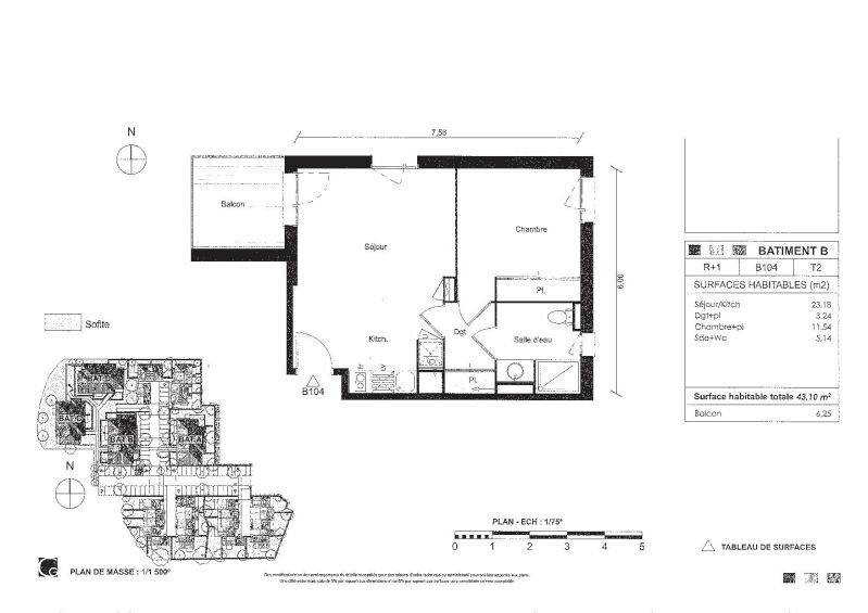 Appartement 2 pièces 43.1m²