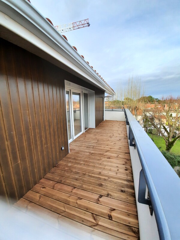Centre ville de Biscarrosse, à 5 mn du centre commercial de Laouadie et 10 mn des plages, agréable T3 en duplex situé dans une résidence récente . Il est composé d'une entrée, d'un séjour avec cuisine équipée (évier, plaque 4 feux, hotte, meubles hauts et bas), de deux chambre dont une avec placard, de deux salles d'eau aménagée, de deux WC séparés et d'une terrasse 13.06m². Il bénéficie de deux parkings couverts.
