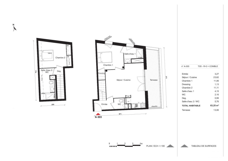 Appartement 3 pièces 63.25m²