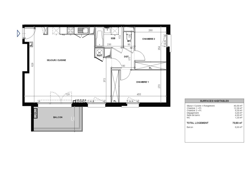 Cette résidence neuve vous propose un grand T3 de 70.60m² situé au 2ème et dernier étage !