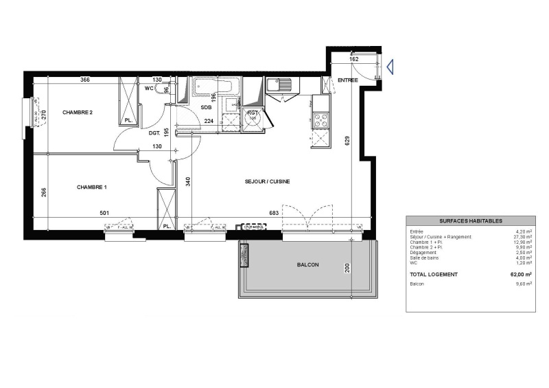 Appartement 3 pièces 62m²