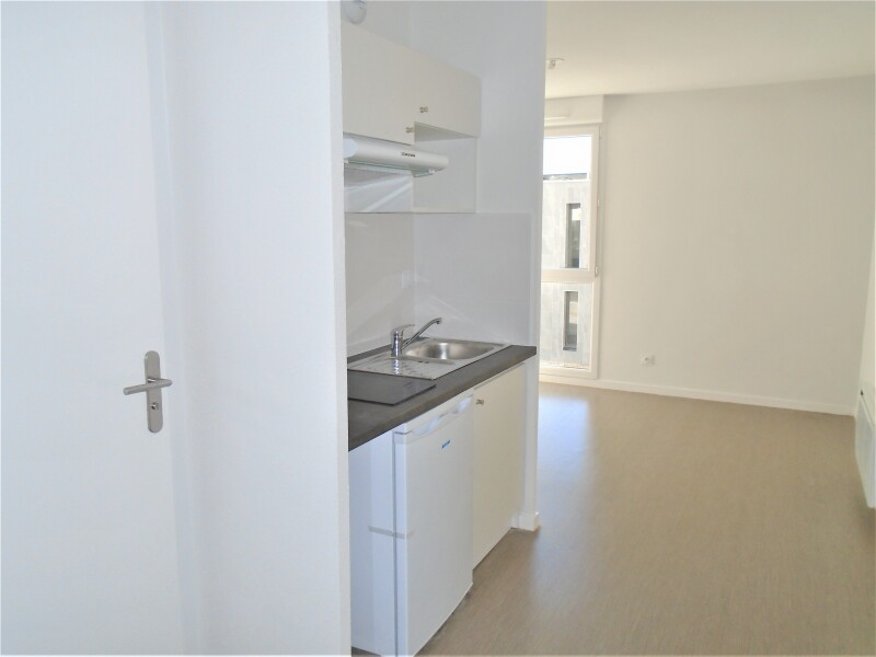 Nous vous proposons ce T1 composé d'un séjour avec cuisine équipée (évier inox, plaque 2 feux, hotte, meubles hauts et bas, frigo top), salle d'eau aménagée avec WC, un parking couvert.