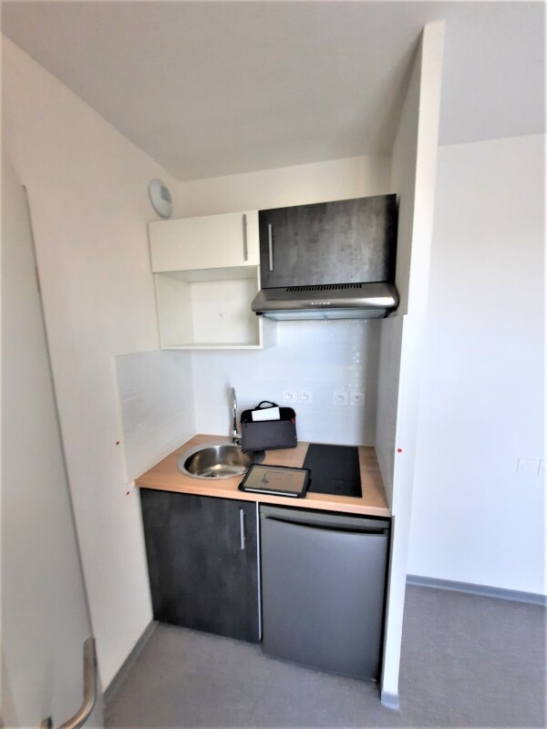 Au 109 route d'Avignon, joli T1 situé dans une résidence avec services : laverie, conciergerie*, salle commune de coworking et de détente, locaux deux roues.Il est composé d'une entrée, d'une pièce de vie avec cuisine équipée (évier inox, plaque 2 feux, hotte, meubles hauts et bas,frigo table top,), d'une salle d'eau aménagée avec WC, d'un balcon de 3.89m².