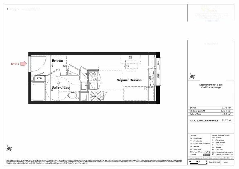 Appartement 1 pièce 20.77m²