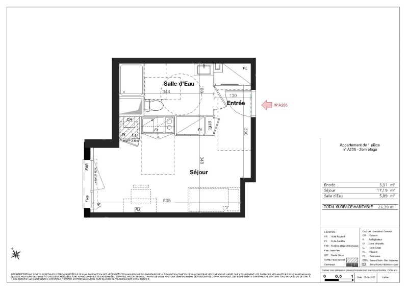 Appartement 1 pièce 26.39m²