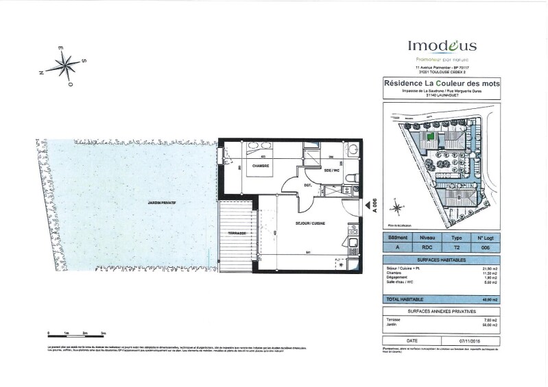 - Une terrasse de 7.00m2 et un jardin privatif de 56m²