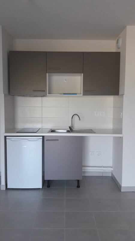 Cet appartement de type 2 en rez de jardin est composé d'un séjour ouvert sur une cuisine équipée (évier inox, plaque 4 feux, hotte, meubles hauts et bas), un chambre, salle d'eau spacieuse