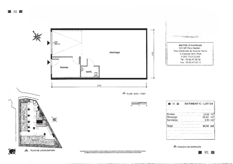 Le local d'une superficie de 80m² dispose d'un bureau climatisé, d'un espace de stockage avec porte sectionnelle motorisé et d'un espace sanitaire, équipé de prise RG45.
