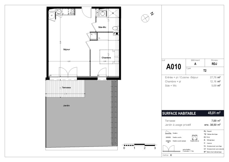 Il se compose d'une entrée, d'un séjour lumineux avec cuisine équipée, ouvrant sur une terrasse de 7 m² et un jardin privatif de 38,50 m². Vous disposerez également d'une chambre avec placard intégré et d'une salle d'eau aménagée avec WC.