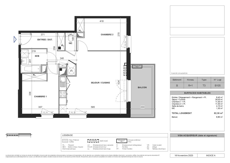 Prestations de qualité : parquet stratifié dans toutes les pièces (sauf WC et SDB), nombreux rangements..