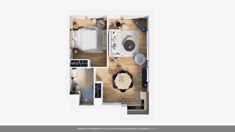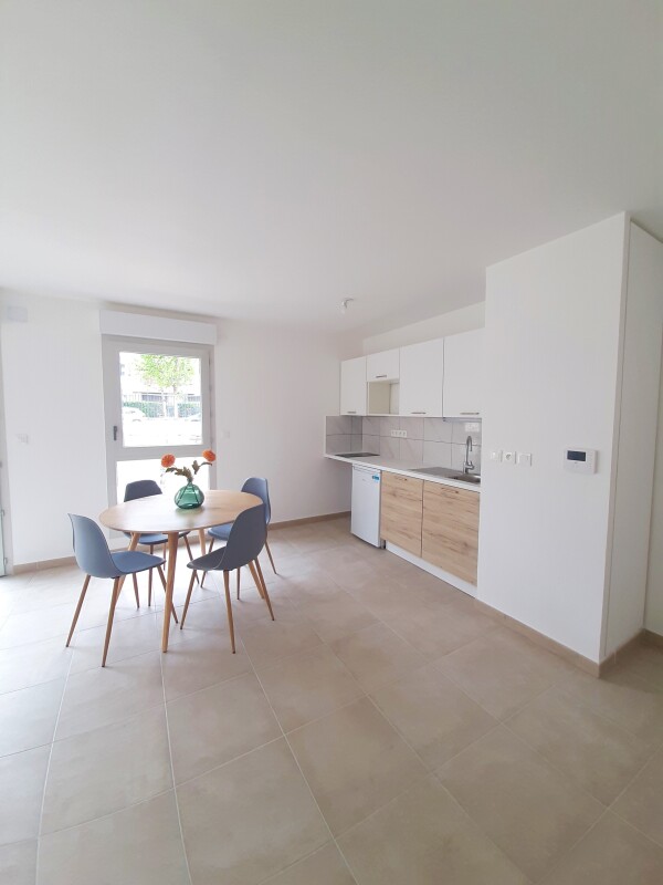 Nous vous proposons un agréable T2 composé d'une entrée, d'un séjour avec cuisine équipée (évier inox, plaque 2 feux, hotte, meubles hauts et bas, frigo table top), d'une chambre, salle d'eau aménagée avec WC.