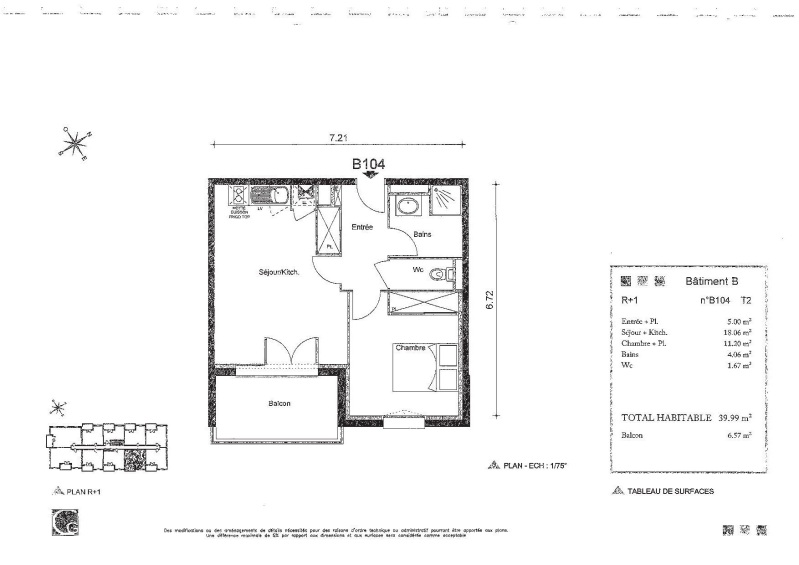 Nous vous proposons un T2 au 1er étage composé d'une entrée, une pièce principale avec une cuisine équipée (meubles hauts et bas, plaque vitrocéramique 2 feux, un frigo table top) avec accès sur un balcon de 6.57m²,d' une chambre avec placard, et d'une salle d'eau aménagée avec WC.