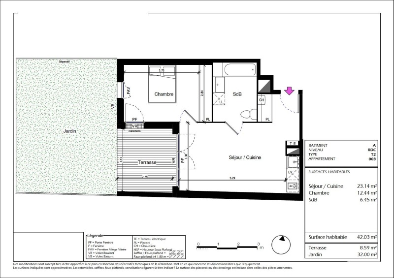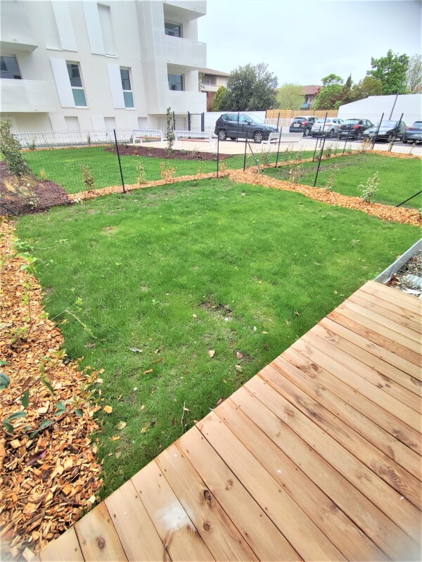 Nous vous proposons de découvrir cet agréable T2 composé d'un séjour avec cuisine équipée (Évier Inox, Meuble haut et Bas, plaque 2 feux, hotte, réfrigérateur table top), d'une chambre avec placard, d'une salle de bain aménagée avec WC, d'une terrasse de 8.59m² et d'un jardin de 32m². Il bénificie d'une place de parking extérieure.