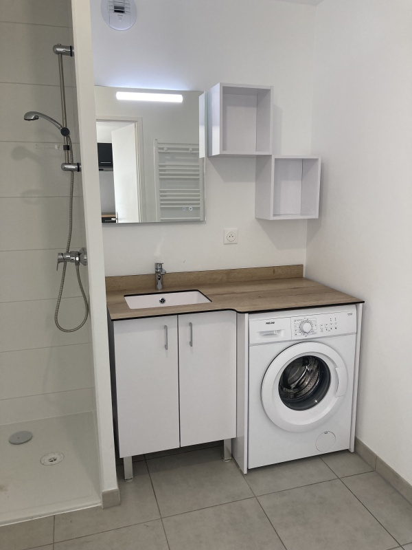 Il se composé d'une entrée, d'un séjour avec cuisine équipée (meubles hauts et bas, évier, micro-ondes, lave vaisselle, frigo, plaque vitrocéramique 2 feux, hotte aspirante) s'ouvrant sur une terrasse de 6.30m² avec son jardin privatif de 68.65m², d'une chambre avec placard, d'une salle d'eau aménagée avec WC.