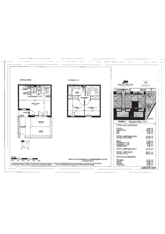 A l'étage ,deux chambres avec placards ainsi qu'une salle de bains aménagée avec wc.
