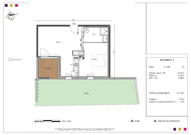 Appartement 2 pièces 41.47m²