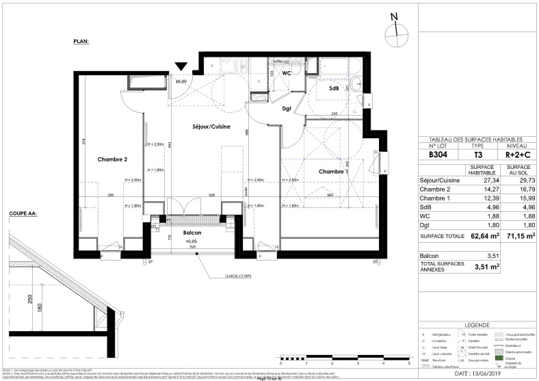 Appartement 3 pièces 62.64m²