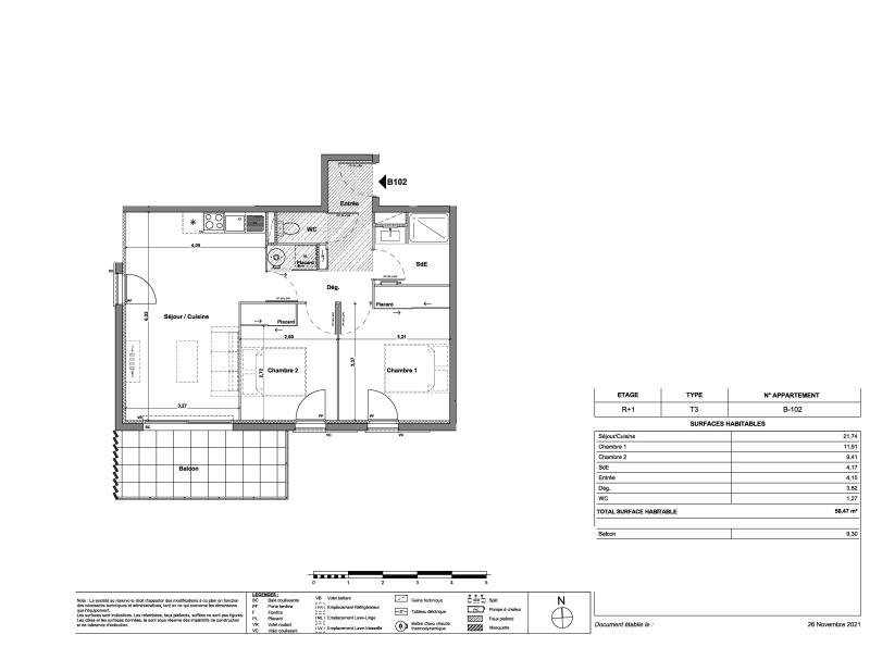 Appartement 3 pièces 56.47m²
