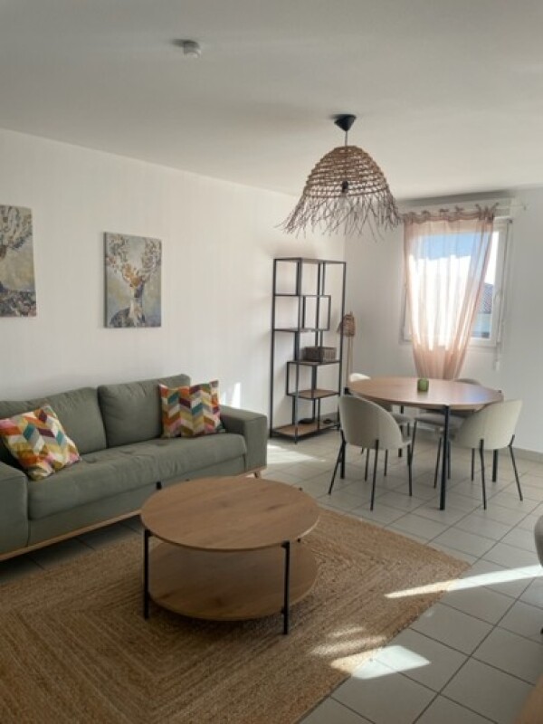 Il se compose d'une entrée avec placard, d'une cuisine ouverte aménagée et équipée (four, plaques de cuisson 2 feux vitrocéramique, hotte aspirante) ,séjour avec accès sur la terrasse (canapé convertible 2 places, fauteuil, table, étagère) d'une chambre (avec 1 lit en 140x190) avec placard, d'une salle de bains et d'un wc séparé.