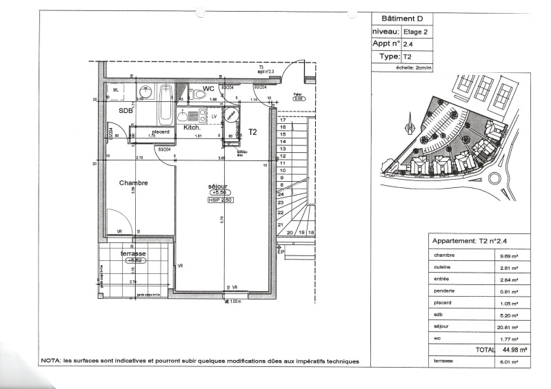 Nous vous proposons cet appartement T2 MEUBLE situé au 2ème étage.
