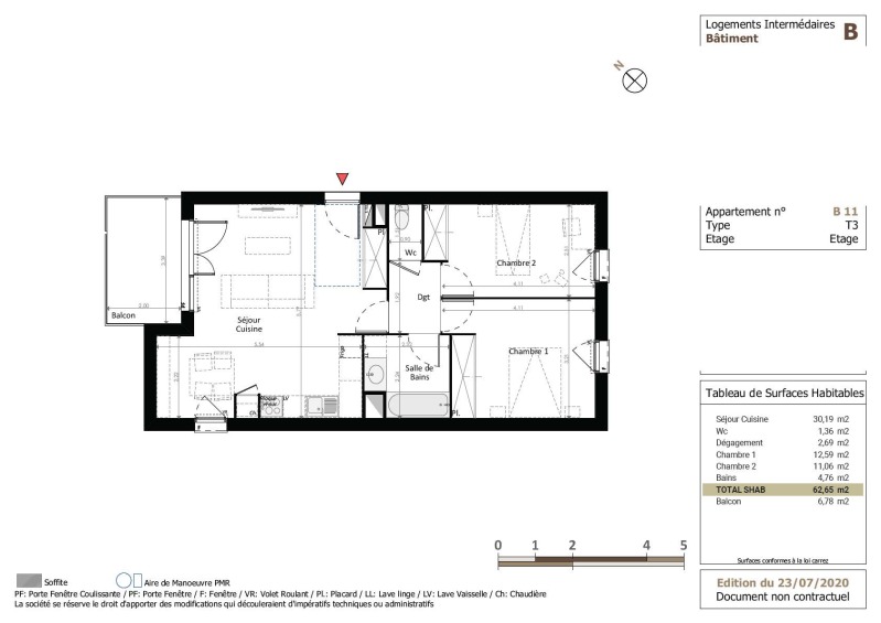 Appartement 3 pièces 62.65m²