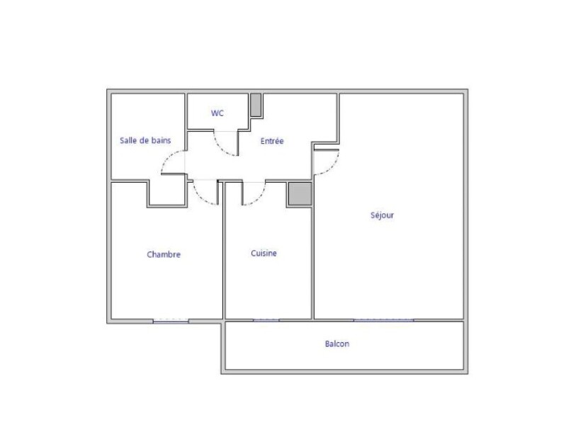 Il se compose d'une entrée, d'un séjour et d'une cuisine fermé et équipée (Un évier, une hotte, meubles hauts et bas, une plaque de cuisson, un micro-ondes et un réfrigérateur) ouvert sur un balcon de 7.32m², d'une chambre, d'une salle de bains aménagée, d'un WC séparé .