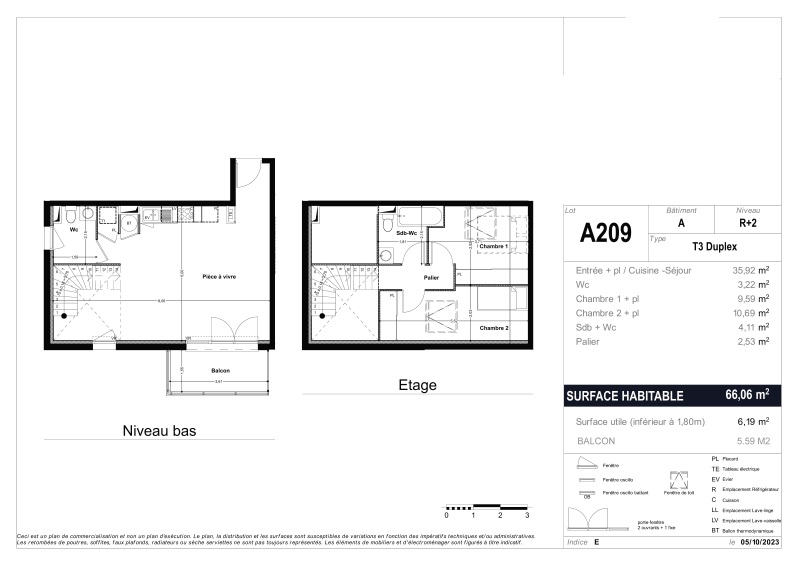Au premier niveau, vous découvrirez un séjour lumineux avec cuisine équipée, un WC indépendant, ainsi qu'un balcon agréable. Un escalier vous mène à l'étage, où se trouvent deux chambres avec placards intégrés, une salle de bain aménagée avec WC.