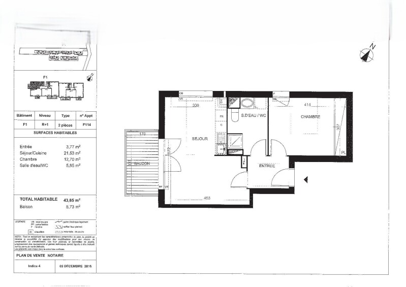 Appartement 2 pièces 43.85m²