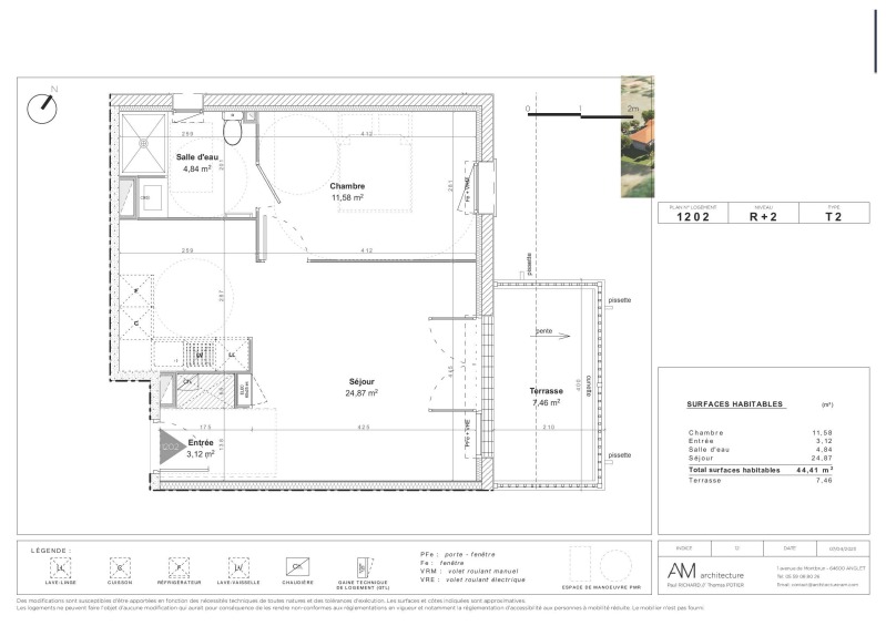 Situé au 2éme étage d'une résidence NEUVE avec ascenseur, cet appartement se compose d'une entrée, d'un séjour avec cuisine (meubles hauts et bas tiroirs, évier inox, four, plaque, lave-linge, réfrigérateur )donnant sur une terrasse de 7.46 m², d'une chambre, d'une la salle d'eau aménagée avec WC.