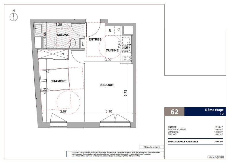 Venez decouvrir cet agréable T2 composé d'une entrée, d'un séjour avec cuisine équipée (évier inox, plaque 2 feux, hotte, meubles hauts et bas, frigo table top), d'une chambre avec placard, d'une salle d'eau aménagée avec WC. Il bénéficie d'un parking en sous-sol.