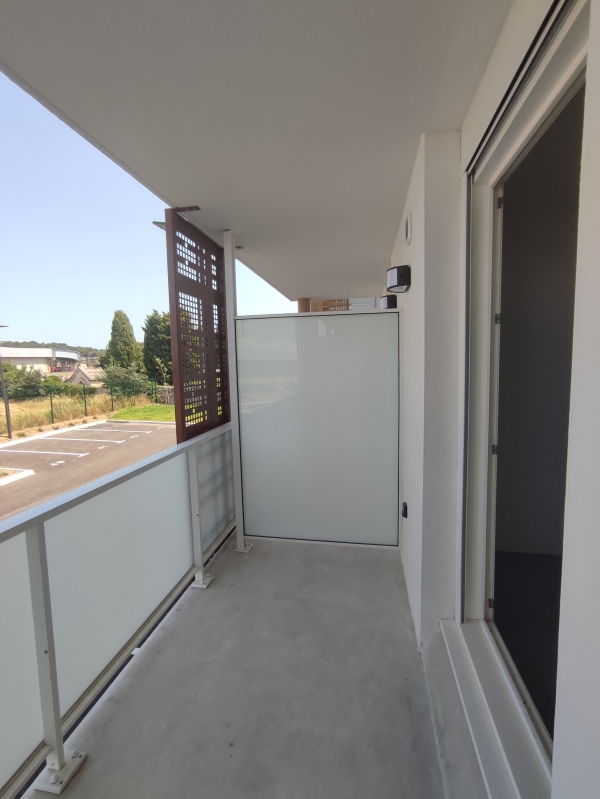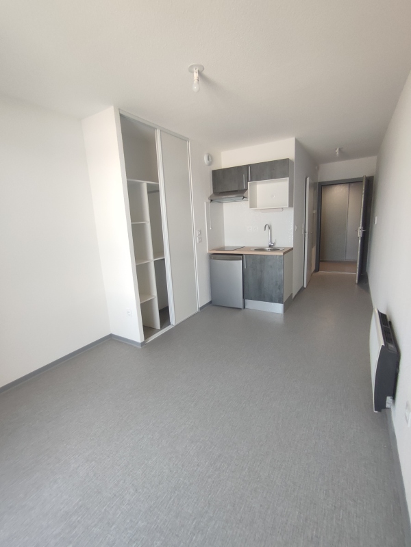 Il est composé d'une entrée, d'une pièce de vie avec cuisine équipée (évier inox, plaque 2 feux, hotte, meubles hauts et bas,frigo table top,), d'une salle d'eau aménagée avec WC, d'un balcon de 4.01m².