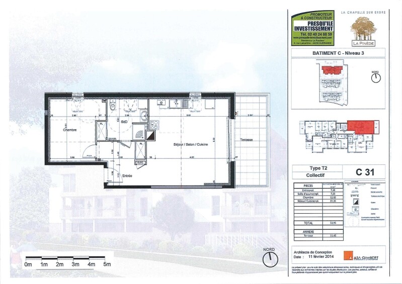 Nous vous proposons ce T2 composé d'une entrée avec placard, cuisine équipée (plaque 2 feux et réfrigérateur, placards) et ouverte sur le séjour et donnant sur une terrasse, une chambre, une salle de bains aménagée avec wc et placard, un parking en sous-sol, ascenseur et local vélo.