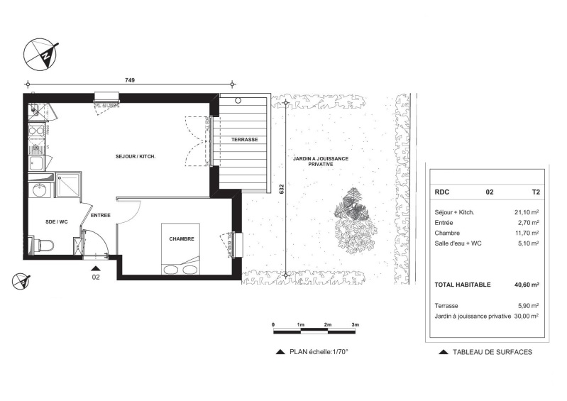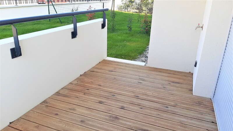 Tout proche de l'aire de pique-nique Caraboss, nous vous proposons un agréable T2 situé en rez-de-jardin composé d'une entrée, d'un séjour avec cuisine équipée (évier inox, plaque 2 feux, meubles bas, frigo top), d'une chambre, d'une salle d'eau aménagée avec WC, d'une terrasse de 5.90m² et d'un jardin de 30m².