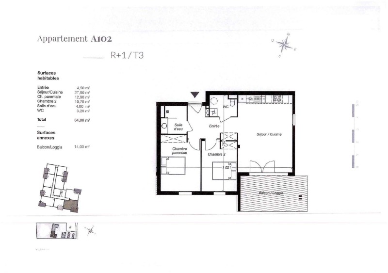 Nous vous invitons à découvrir un T3 composé d'une entrée, d'un séjour avec cuisine aménagée (Plaque de cuisson 4 feux vitrocéramiques, meubles bas), de deux chambres avec placard, d'une salle d'eau aménagée et d'un WC séparé, d'un balcon de 14 m².
