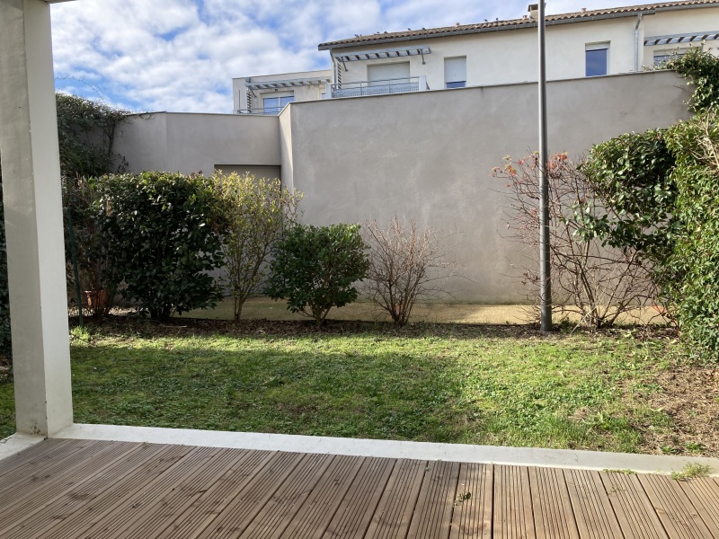 Découvrez un appartement T1 situé au rez-de-jardin composé d'une entrée avec placard, d'une cuisine équipée (évier, meubles hauts et bas, hotte, plaques de cuisson 2 feux ) ouverte sur séjour avec accès sur la terrasse et son jardin ,d'une salle d'eau avec meuble vasque et WC.