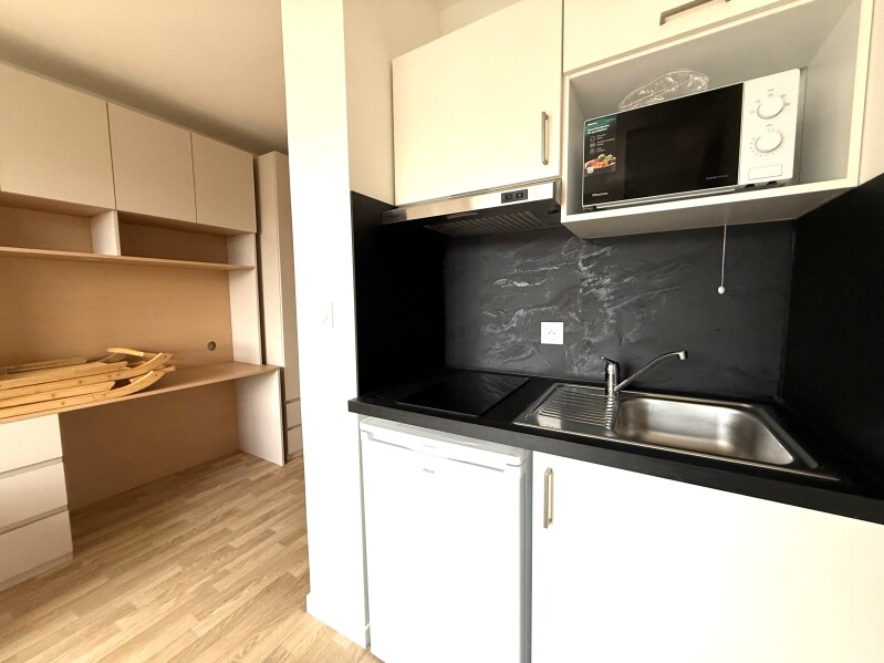 Nous vous proposons à la location ce charmant appartement T1 meublé, situé au 3ème étage. Il se compose d'une entrée, d'une pièce à vivre, d'une cuisine équipée et d'une salle d'eau aménagée avec WC.