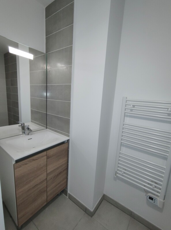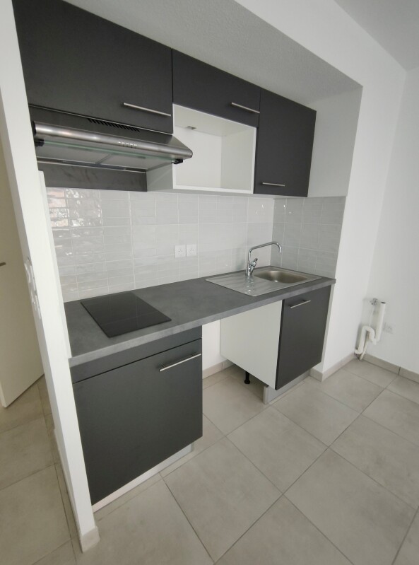 Il se compose d'une entrée fonctionnelle, d'un séjour lumineux avec cuisine équipée comprenant meubles hauts et bas, plaque de cuisson et hotte aspirante. La chambre dispose d'un placard intégré pour un rangement optimisé. Vous trouverez également une salle d'eau contemporaine et un WC séparé pour plus de praticité.