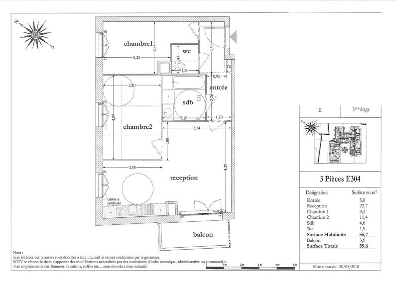 Appartement 3 pièces 55.7m²
