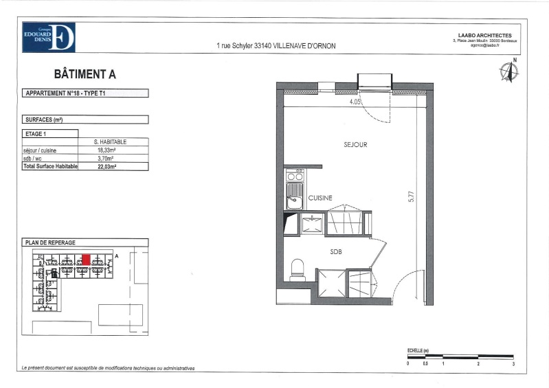 Appartement 1 pièce 22.03m²
