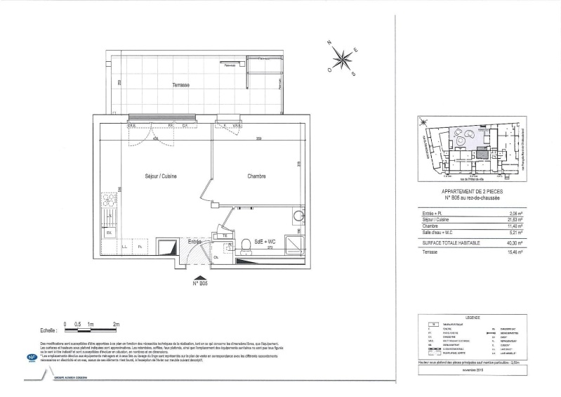 Il se compose une entrée avec placard, d'une cuisine ouverte sur séjour avec accès sur une belle et grande terrasse de 15.46 m², d'une une chambre et d'une une salle de bains aménagée avec WC .