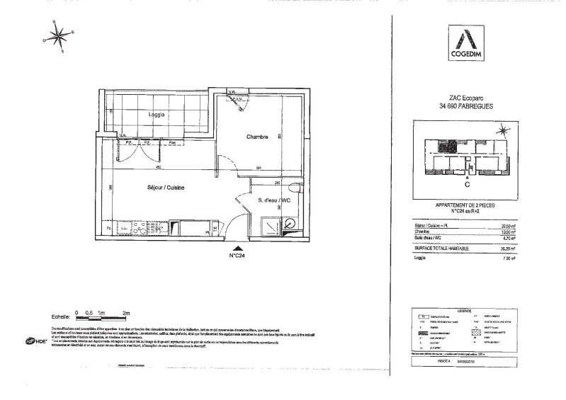 Nous vous proposons ce T2 composé d'une entrée, séjour avec cuisine ouverte sur une loggia de 7.00m², une chambre, rangements, salle d'eau aménagée avec WC et un parking aerien.