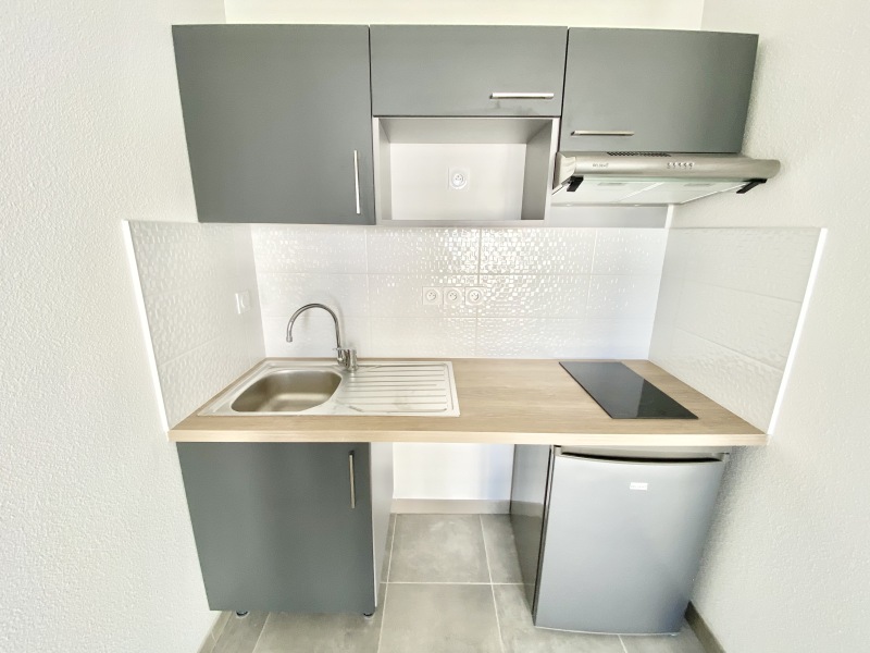Sur les hauteurs de Rangueil, agréable T2 composé d'une entrée, d'un séjour avec cuisine équipée (évier inox, plaque 2 feux, hotte, meubles hauts et bas, frigo top), d'une chambre, d'une salle de bains aménagée avec WC, d'une loggia de 4.79 m² . Il bénéficie d'un parking couvert et d'un cellier.