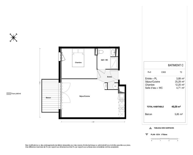 Agréable T2 composé d'une entrée, d'un séjour avec cuisine équipée (évier inox - meubles haut et bas - hotte aspirante - plaque vitrocéramique 2 feux - Réfrigérateur table top), d'une chambre , d'une salle d'eau aménagée avec WC et un balcon de 5.85m². Il bénéficie d'un parking en sous sol.