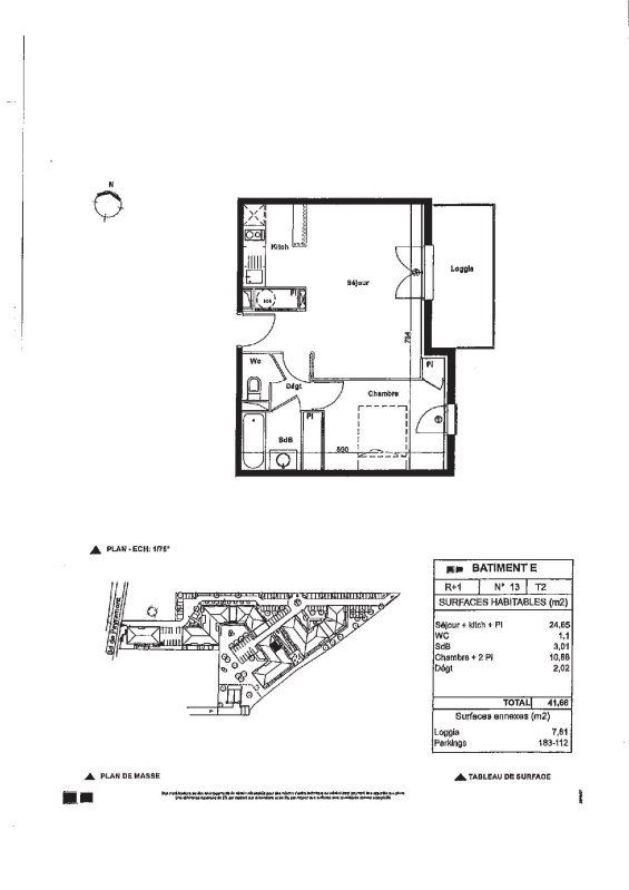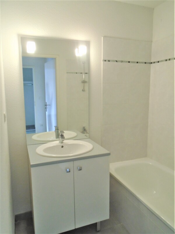 Nous vous proposons un appartement T2 situé au 1er étage composé d'une entrée avec placard, d'un séjour avec cuisine équipée (évier, plaque 2 feux, meubles hauts et bas) s'ouvrant sur une loggia, d'une chambre avec placard, d'une salle de bains aménagée et d'un WC séparé.