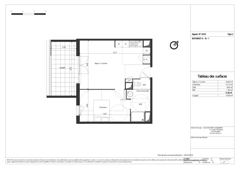 Nous vous proposons un agréable T2 composé d'un séjour avec cuisine équipée (évier inox, plaque 2 feux, hotte, meubles hauts et bas), d'une chambre, d'une salle d'eau aménagée, d'un WC séparé et d'une loggia de 10.40m². Il bénéficie d'un parking en sous sol.