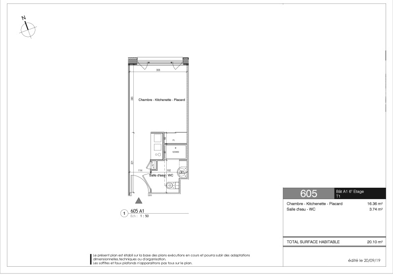 Nous vous proposons ce T1 composé d'un séjour avec cuisine équipée (évier inox, plaque 2 feux, hotte, meubles hauts et bas, frigo top, micro-ondes), salle d'eau aménagée avec WC.
