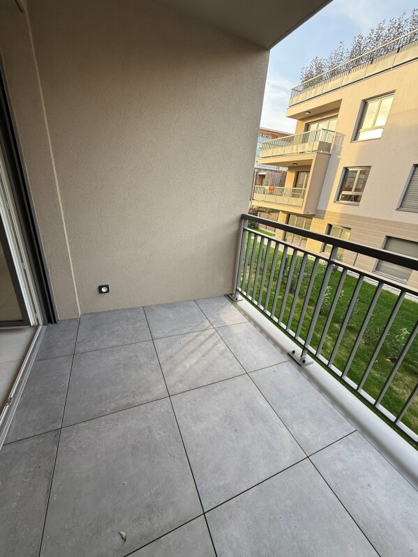 Nous vous proposons à la location ce charmant appartement T2, situé au 1er étage d'une résidence neuve. Il se compose d'une pièce à vivre, d'une cuisie équipée, d'une chambre avec placard, d'une salle d'eau aménagée avec WC et d'un balcon de 4.50m². Il bénéficie d'un garage en sous-sol.
