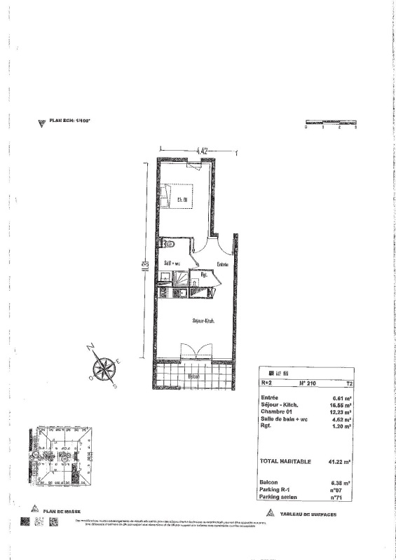 Il se compose d'une cuisine équipée (meubles hauts et bas, plaque vitrocéramique 2 feux, réfrigérateur table top) ouverte sur le séjour donnant sur un balcon, une salle d'eau aménagée, une chambre. Deux emplacements de parking. Résidence sécurisée avec ascenseur.